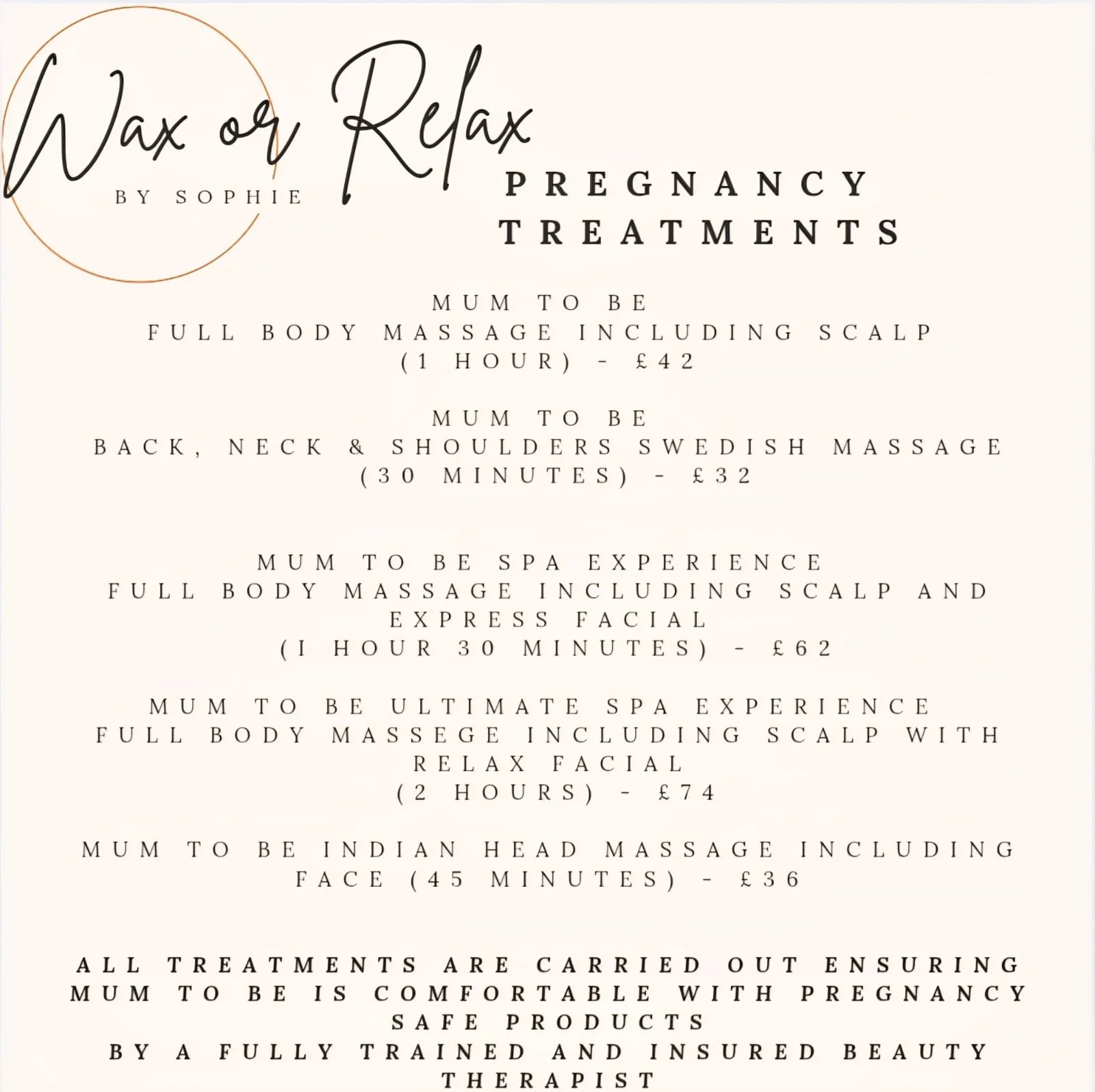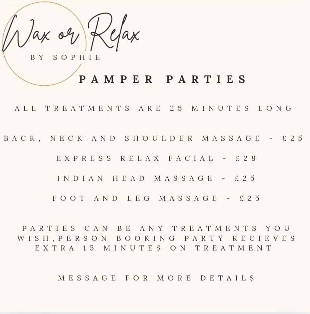 Waxing - Massage - Facials - Nails - Spa Experience Treatments - Pregnancy Treatments - Pamper Parties - Children’s Pamper Parties -